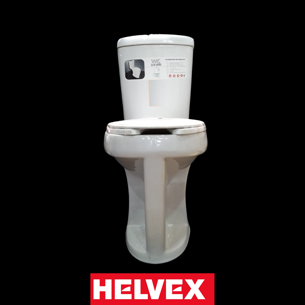 WC 2.5 LPD Inodoro, taza y tanque, trampa semioculta. Descarga de 2.5 LPD. Botón accionador. No incluye asiento