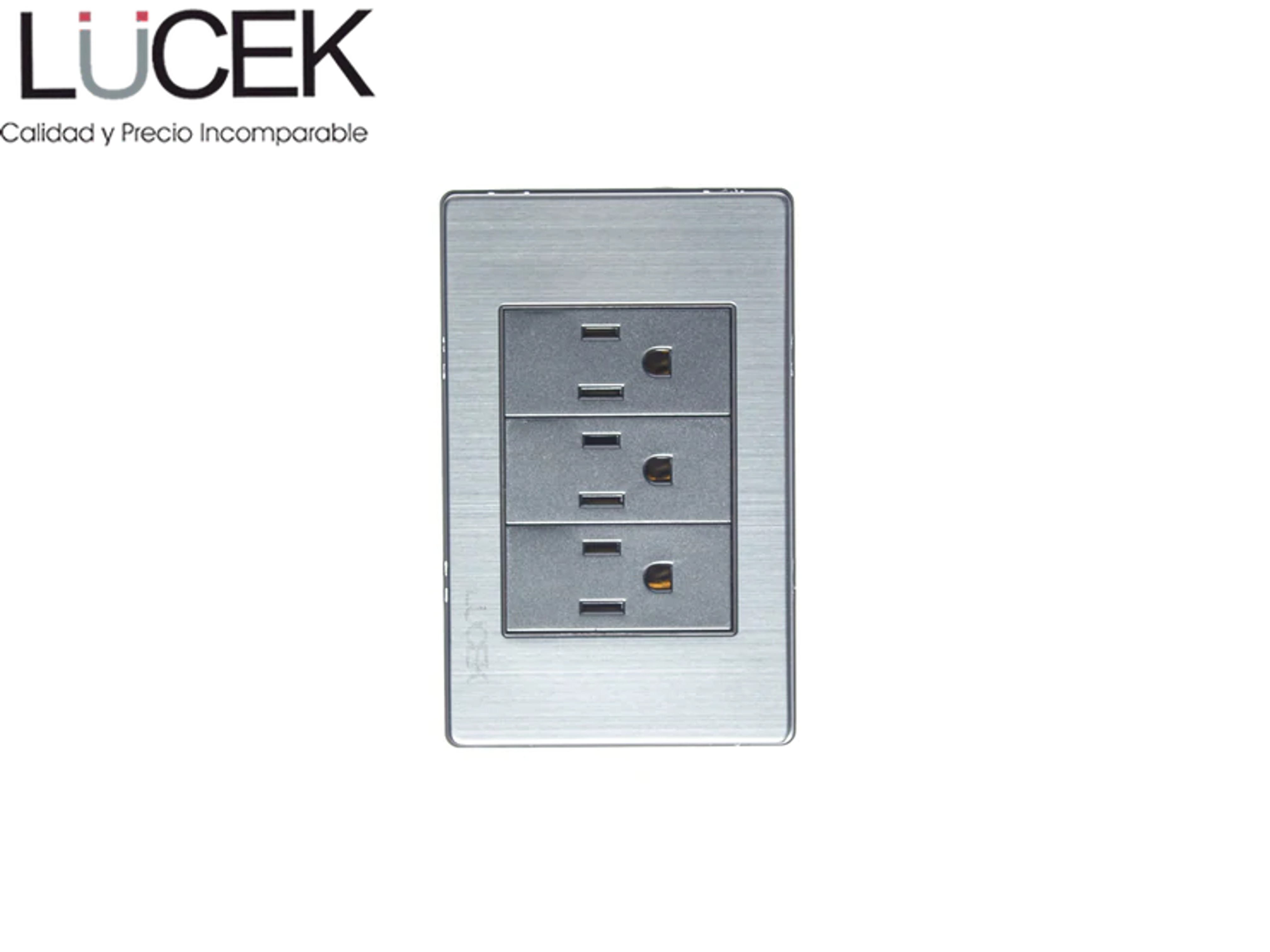 PLACA DE 3 MÓDULOS CON DOS APAGADORES SENCILLOS Y UN CONTACTO DE 1 MODULO ANODIZADO