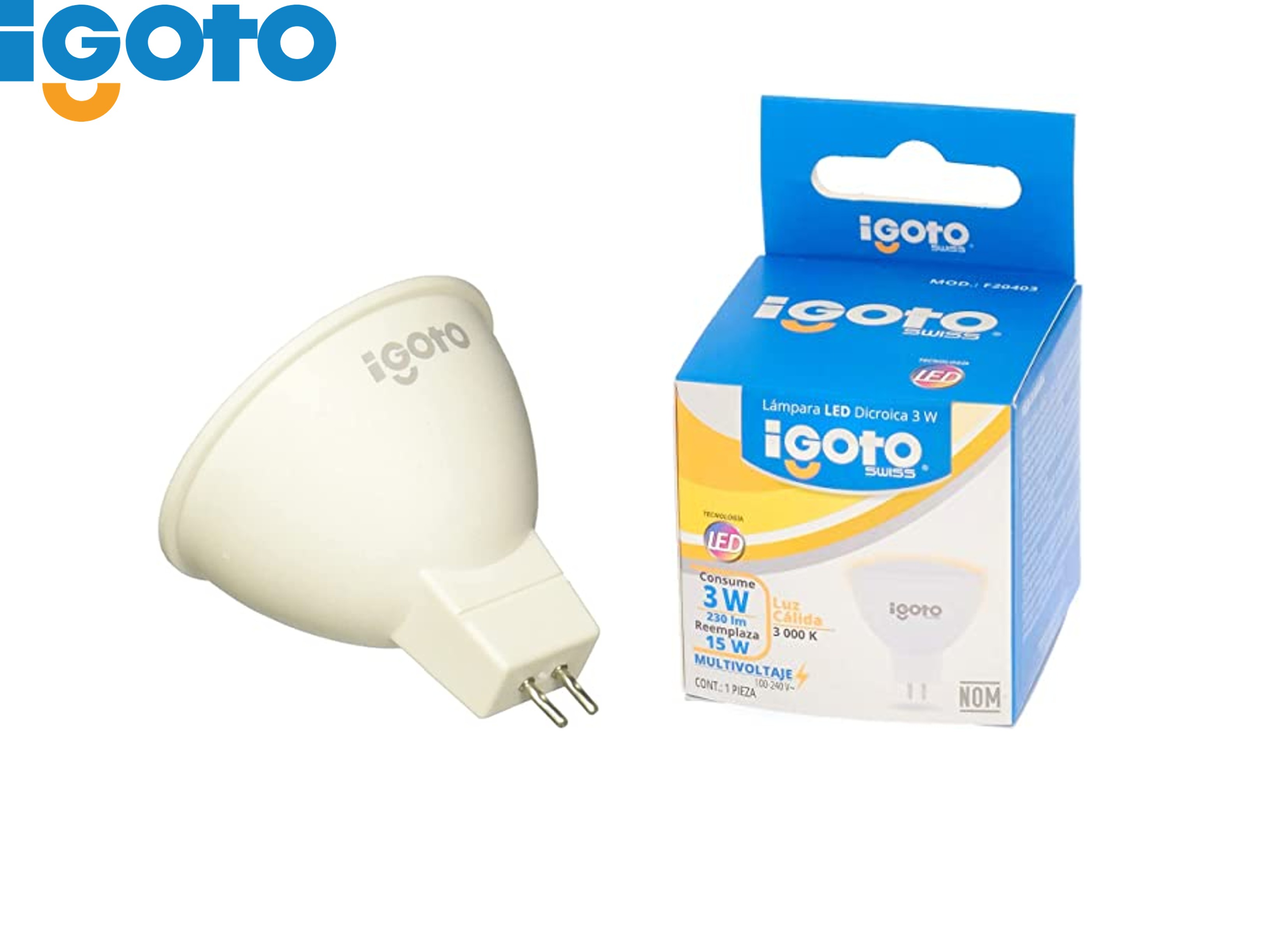 FOCO LED MR16,3 WATTS, LUZ CÁLIDA